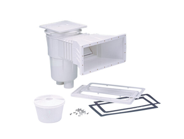 Alle Komponenten dieser Skimmer-Serie sind UV-beständig und aus hochwertigem ABS gefertigt. Der Skimmer ist mit einer integrierten Wehrklappe (Wehrklappe) und einem Durchflussregler-Stopfen ausgestattet.