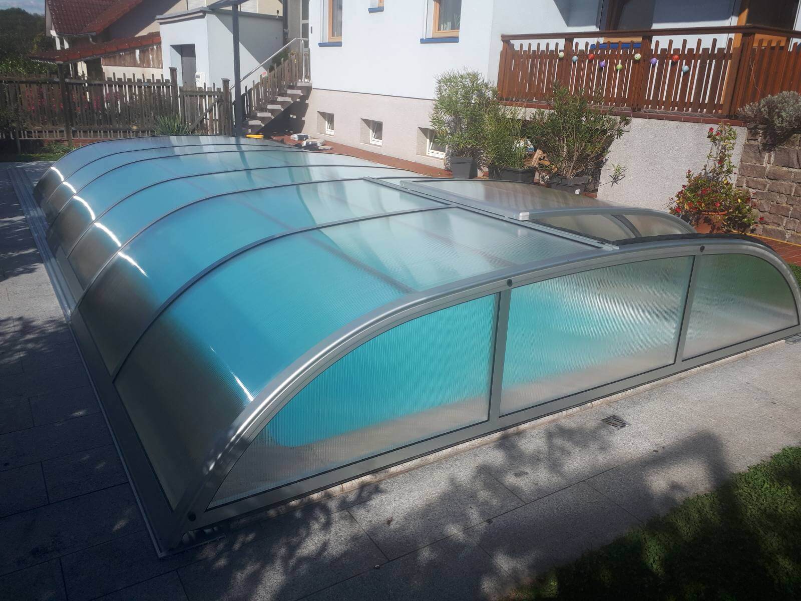 Die wirtschaftlichste Polycarbonatverglasung, die neugierige Blicke in den Poolbereich verhindert und gleichzeitig hervorragende Wärmedämmeigenschaften bietet.